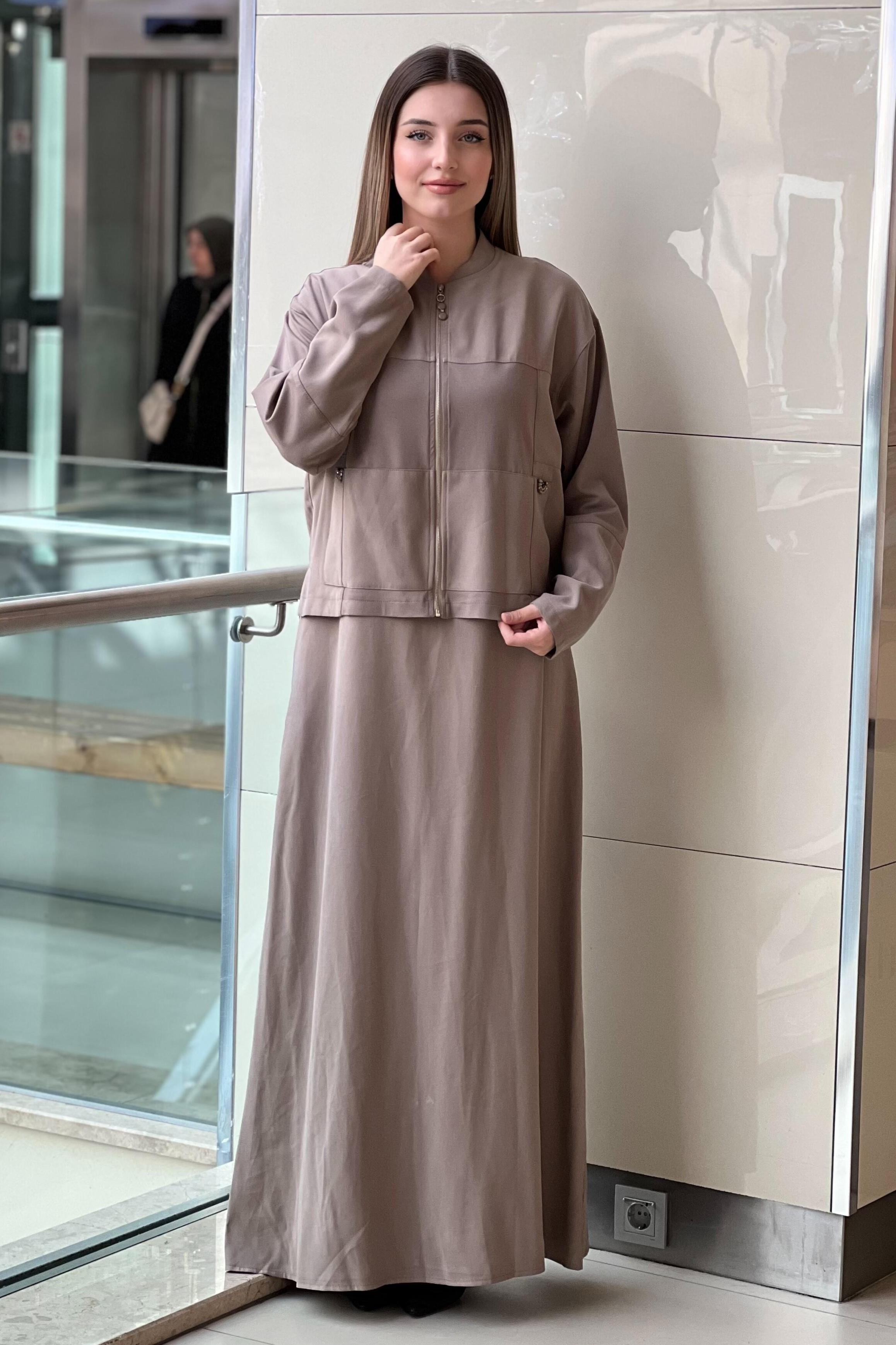 Ceket Sıfır Yaka Düşük Kol Cepli Fermuarlı