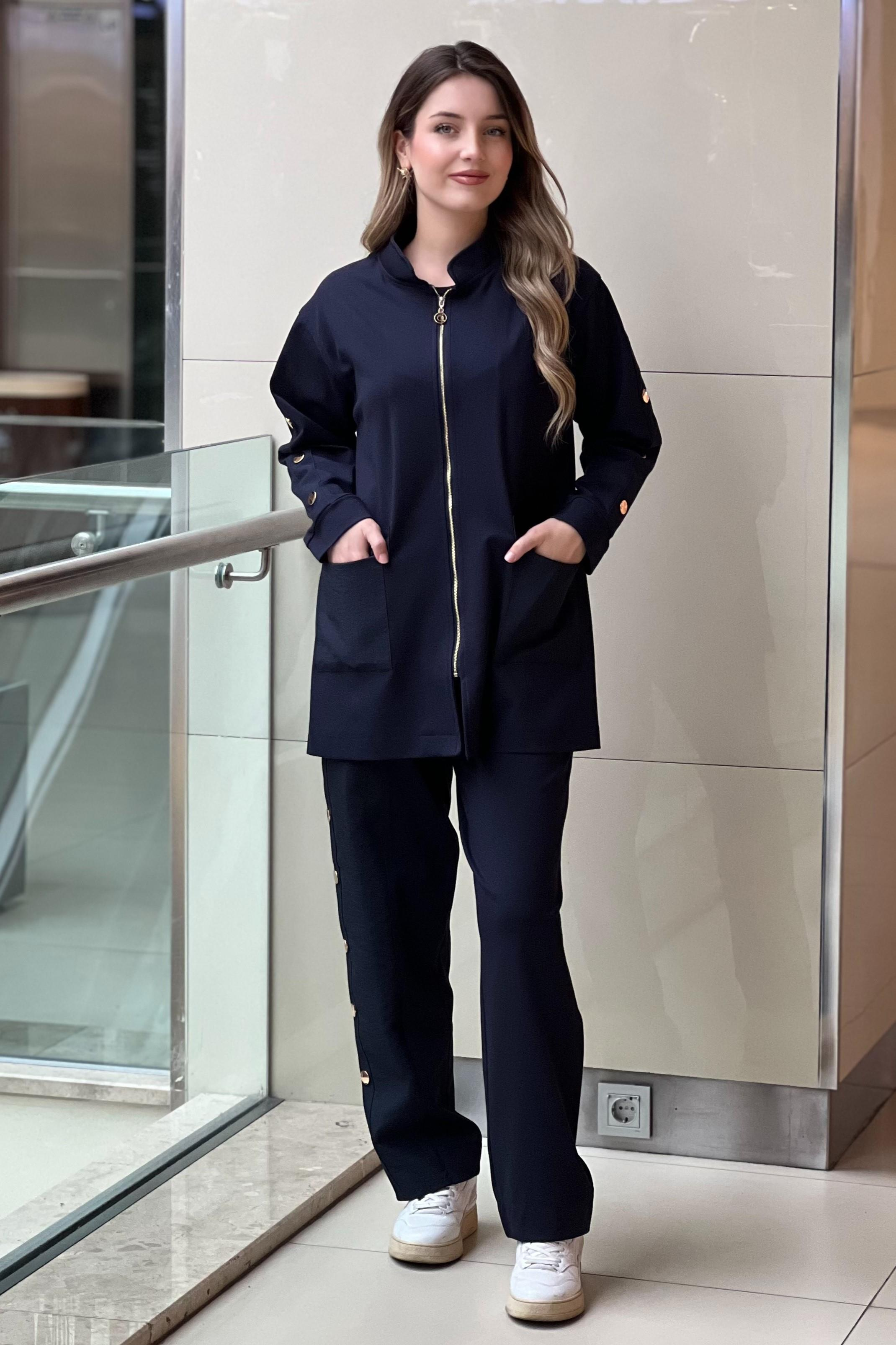 Ceremony Kolları Çıtçıt Detaylı Önden Fermuarlı Hakim Yaka Ceket Pantolon Takım