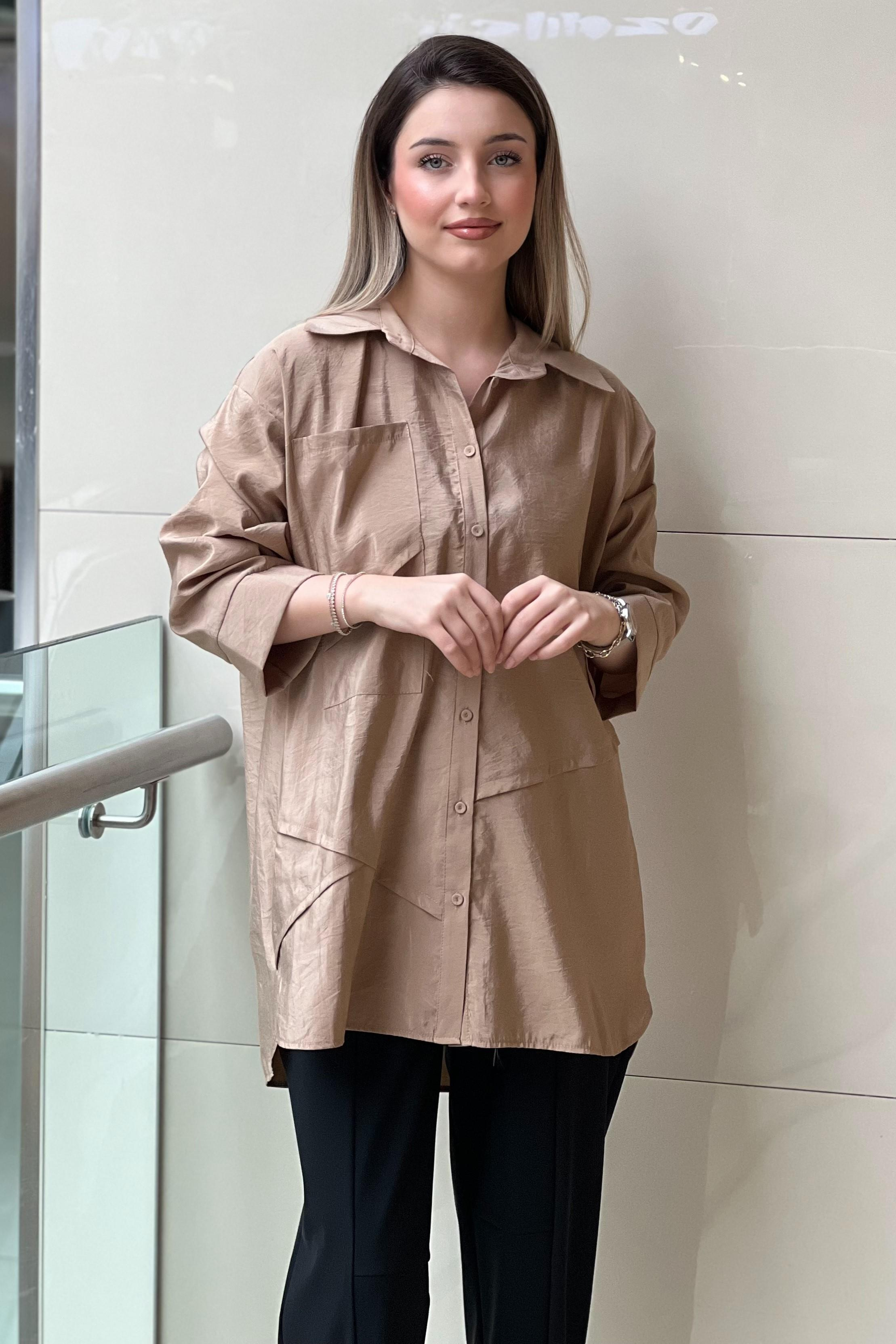 Gömlek Yaka Düşük Kol Cepli Oval Kesim