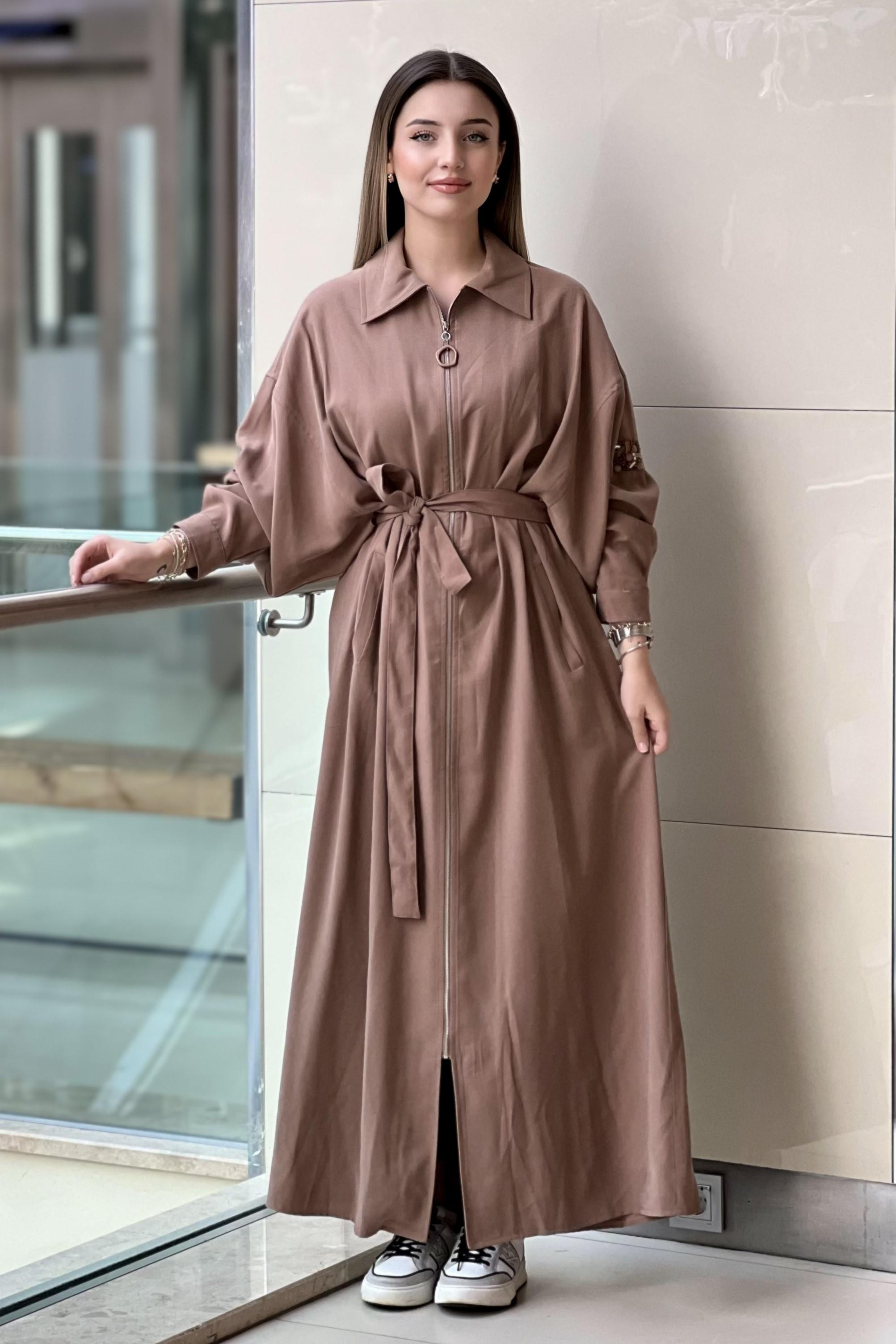 Kap Gömlek Yaka Düşük Yarasa Kol Cepli Kuşaklı
