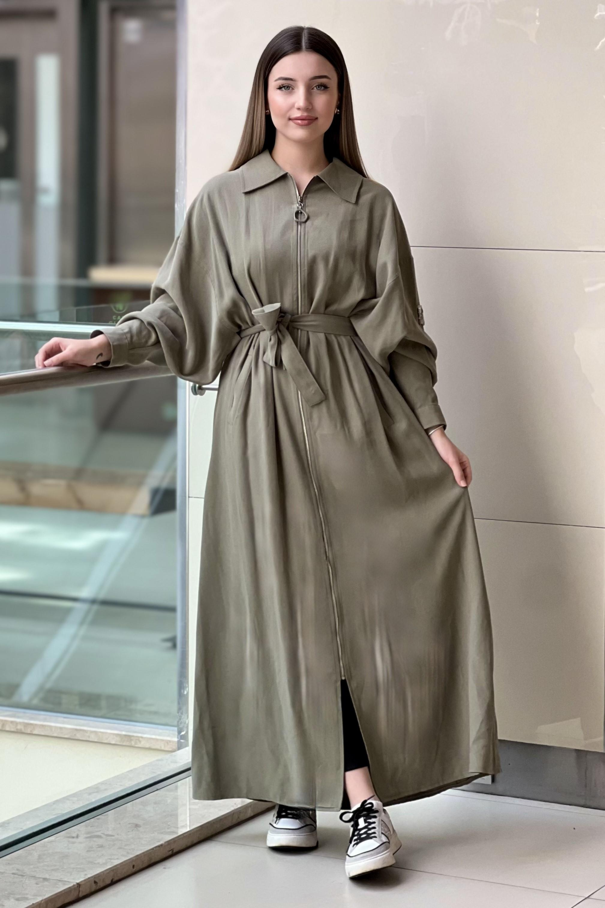 Kap Gömlek Yaka Düşük Yarasa Kol Cepli Kuşaklı