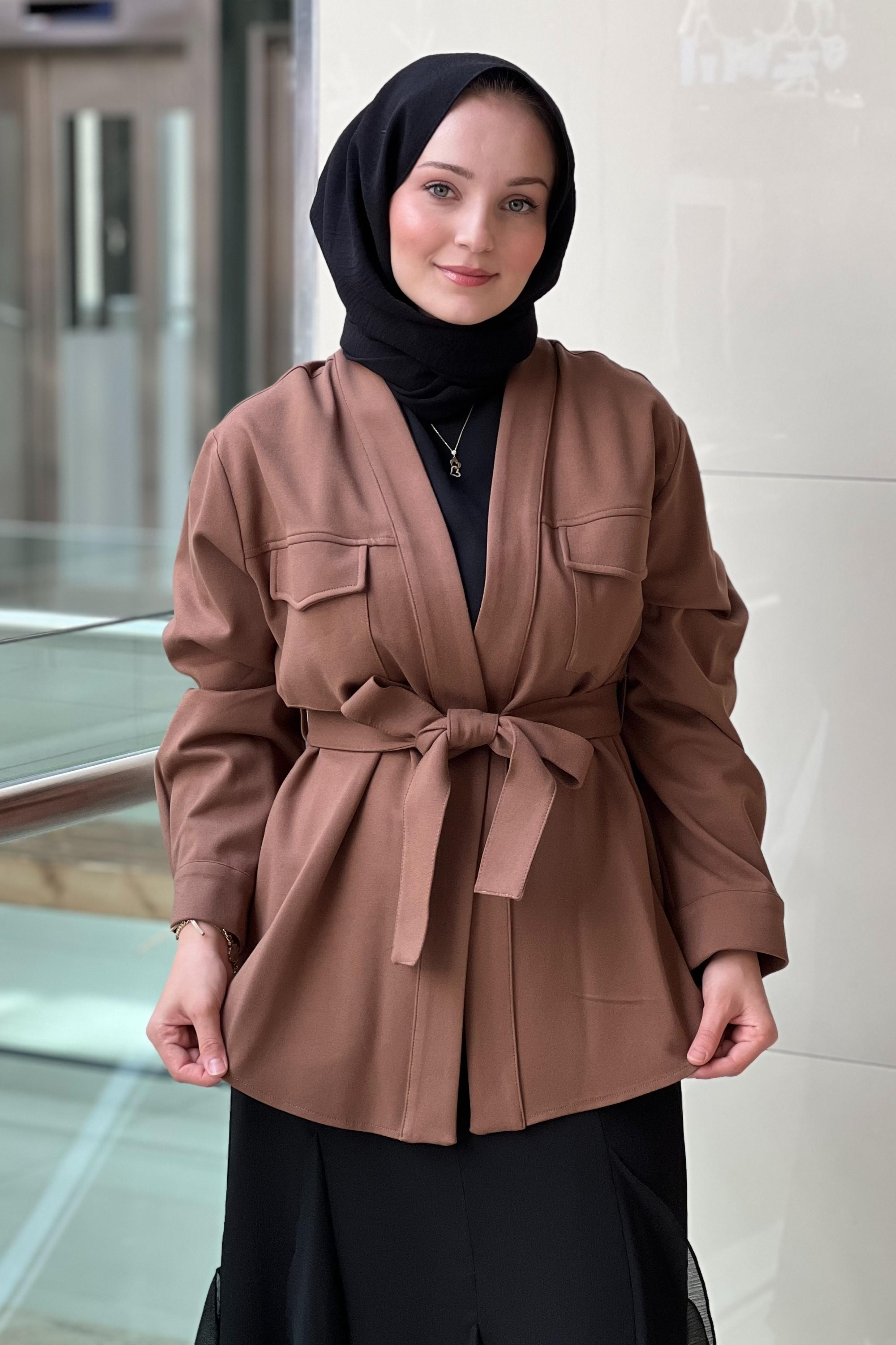 Şal Yaka Düşük Kol Cepli Bel Kuşaklı