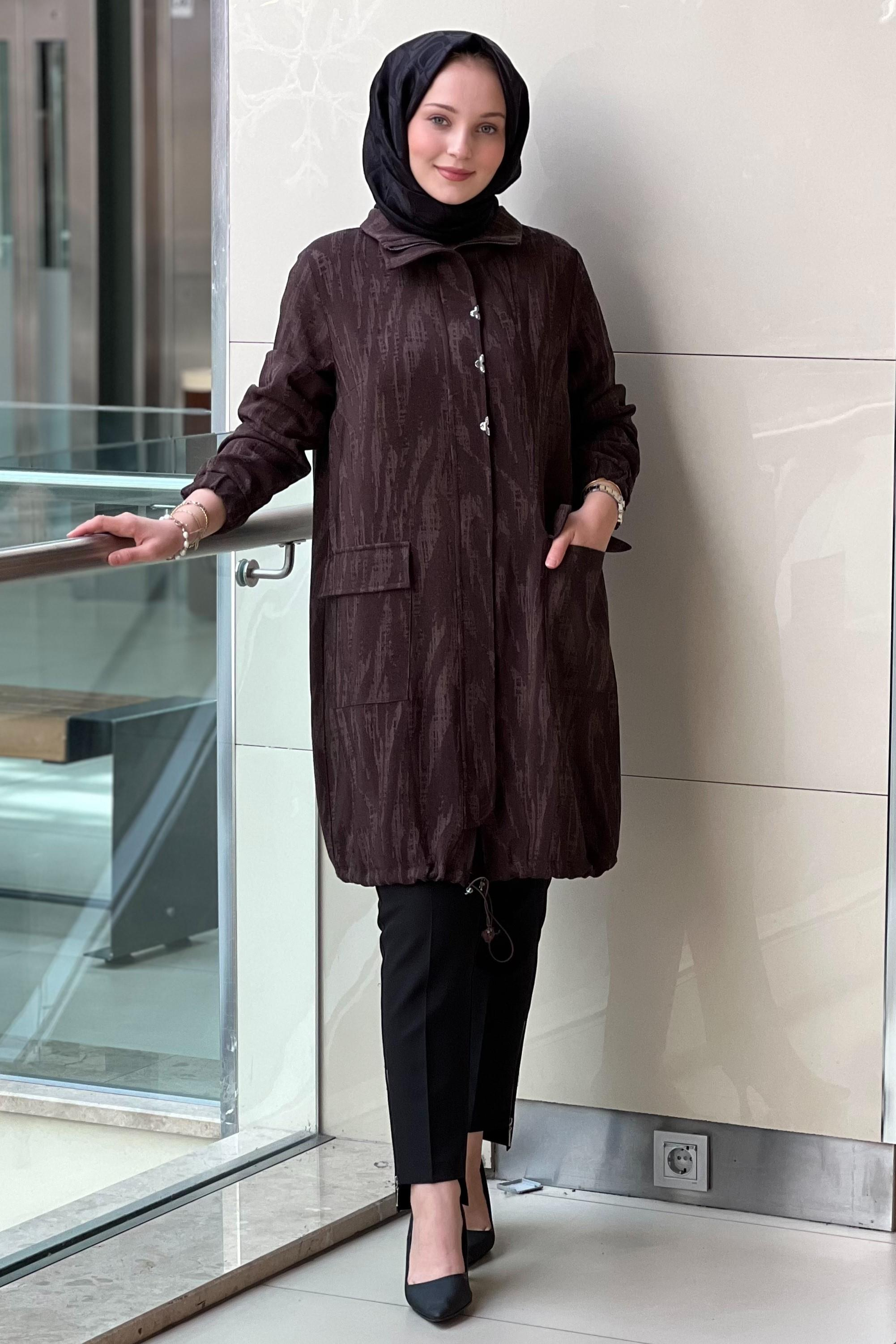 Dik Yaka Takma Kol Fermuarlı Cepli Lastikli Manşet