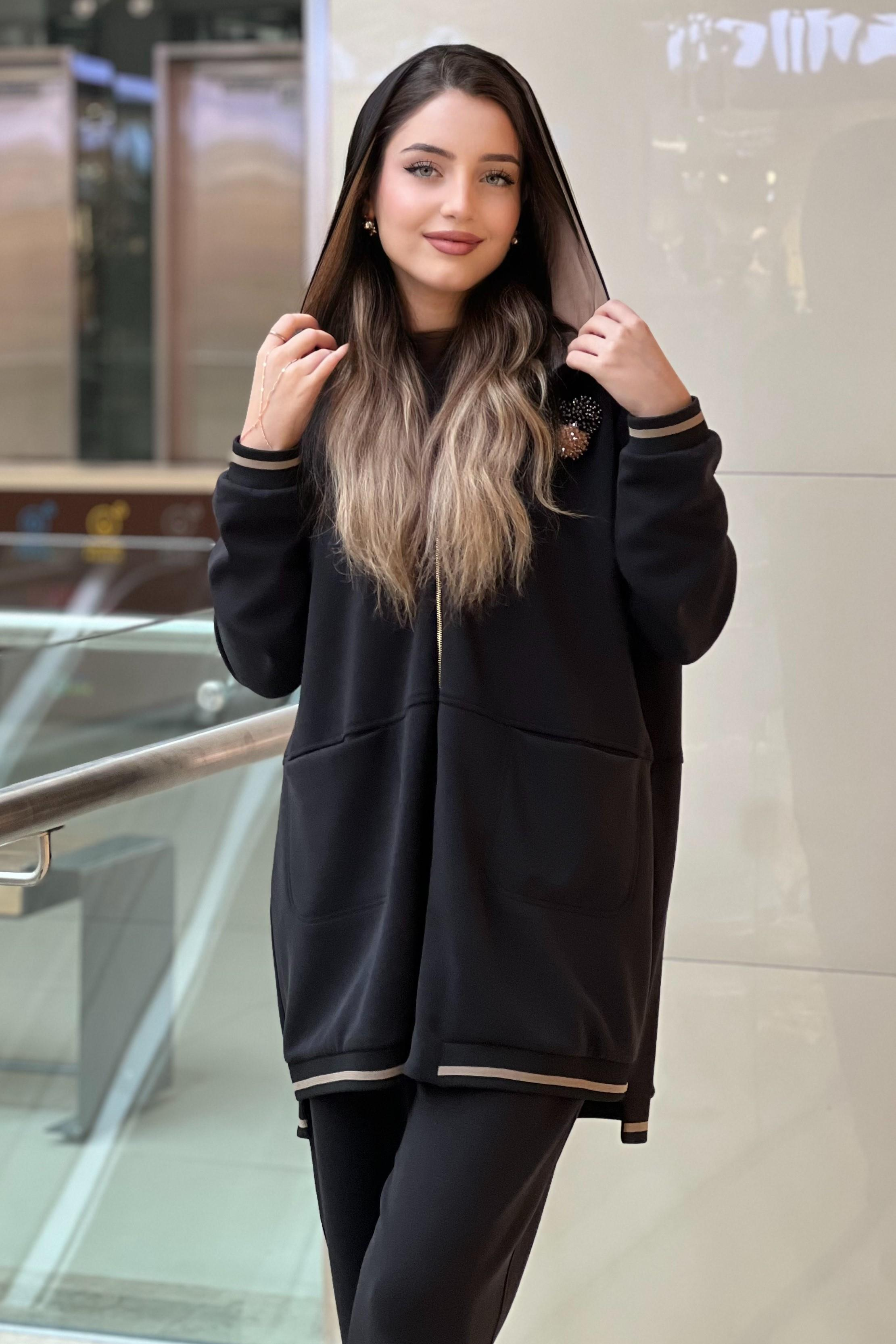 Fuat Gürşen Kapüşonlu Broş Detaylı Fermuarlı Kap