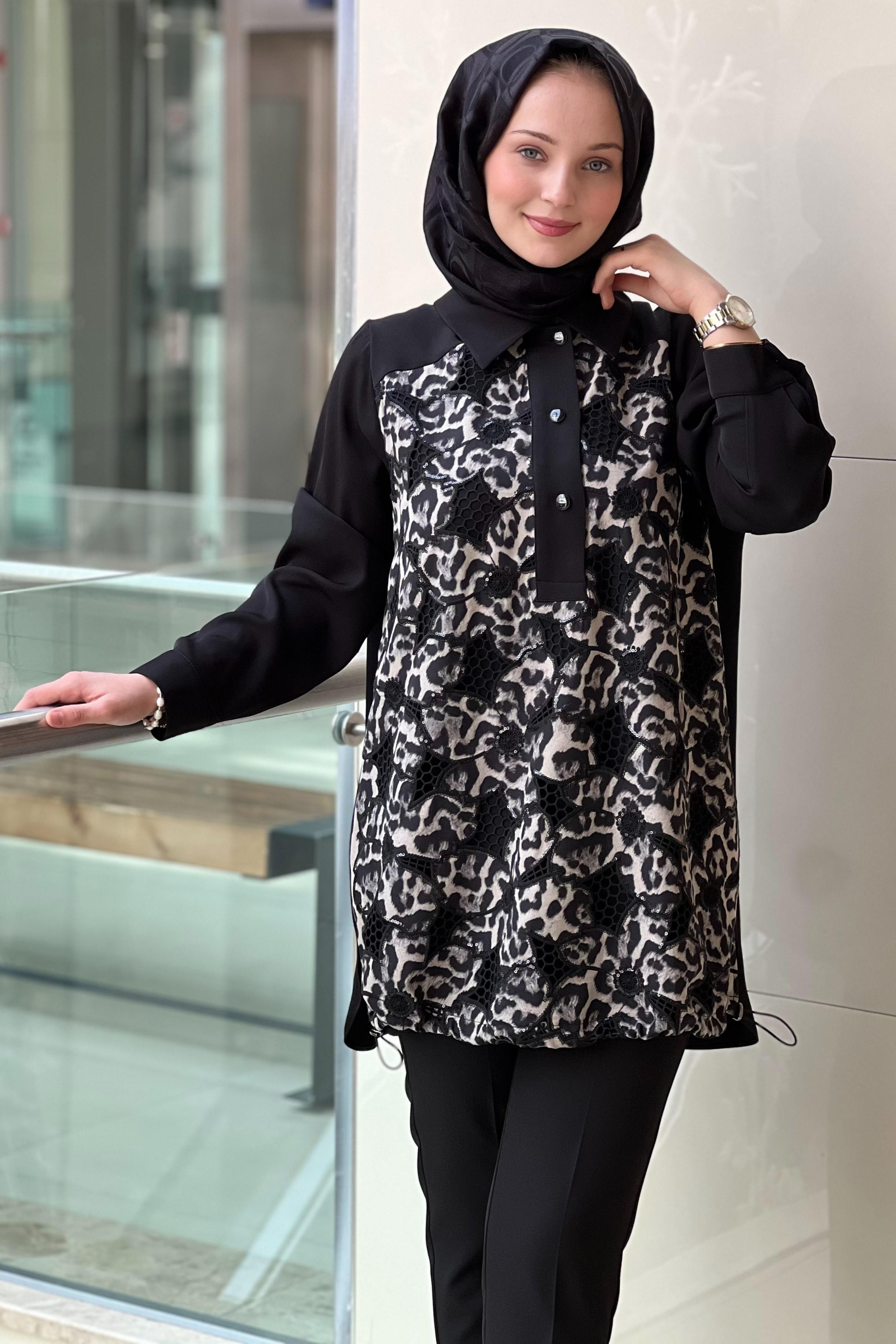 Tunik Gömlek Yaka Düşük Kol Astarlı Yanları Stoperli