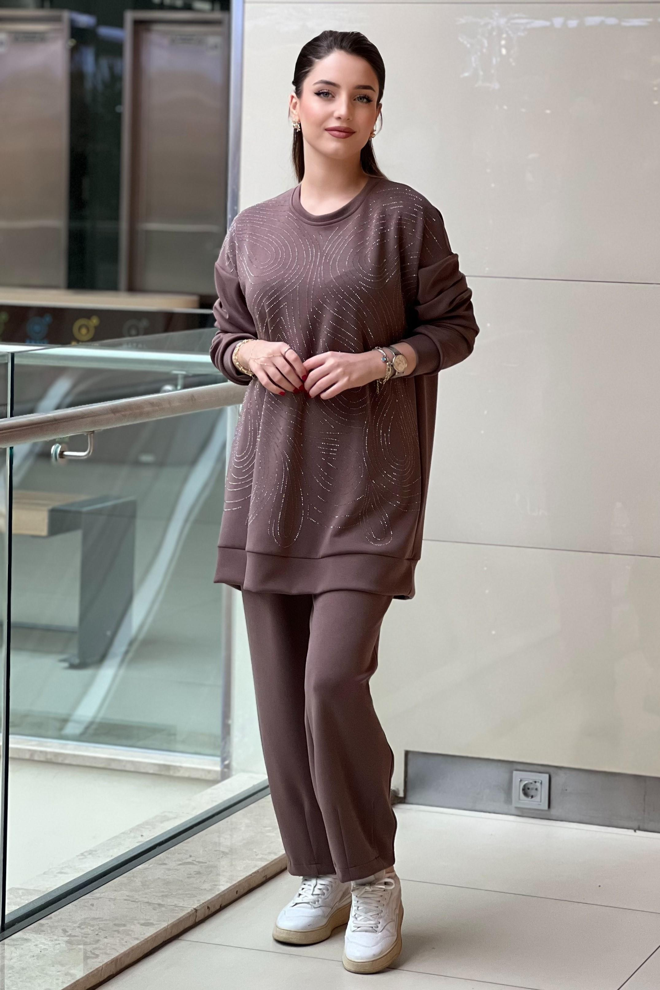 Fuat Gürşen Önü Taş İşlemli Tunik Pantolon Takım (26KFUATKM4337)