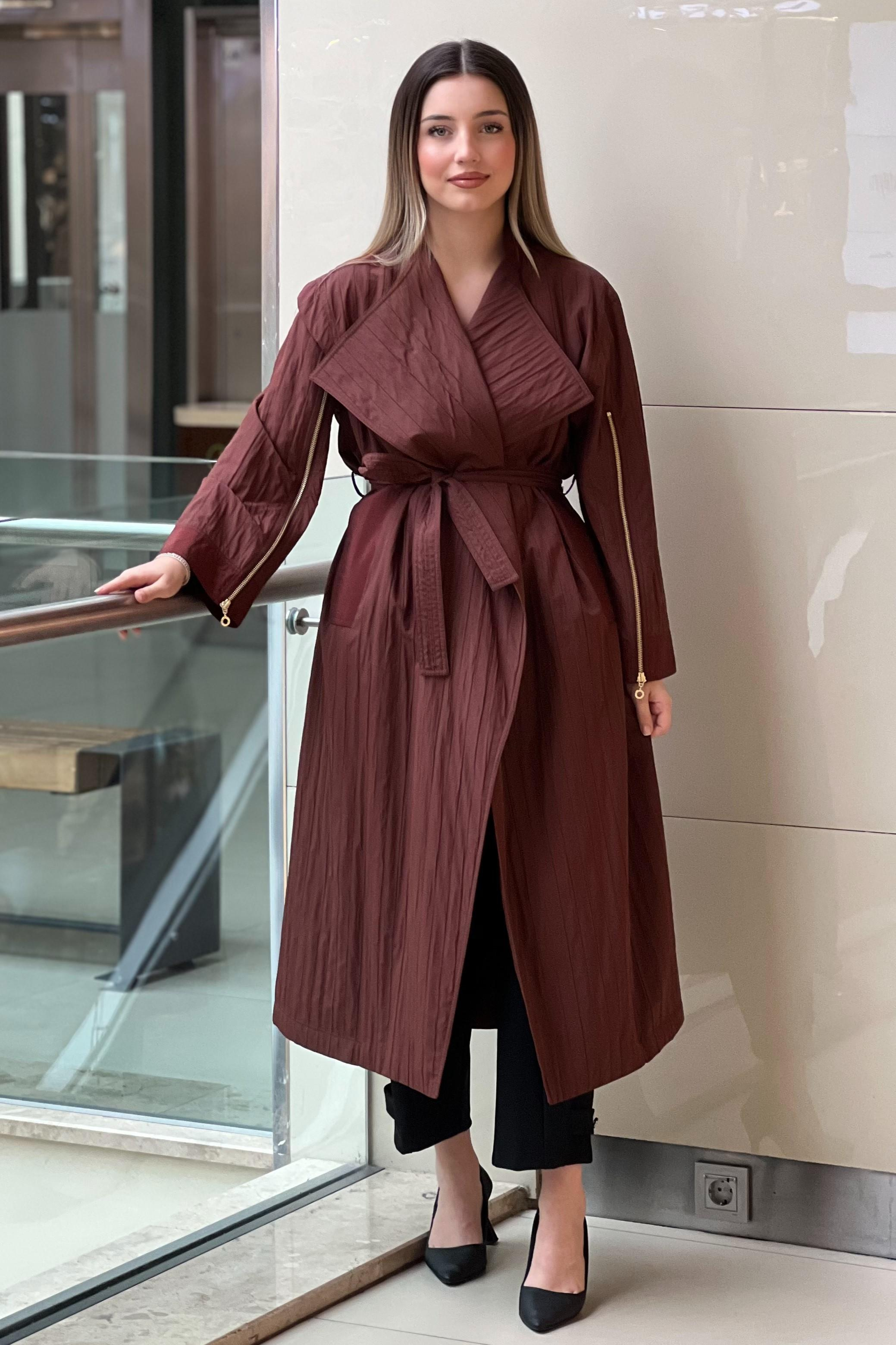 Ghisa Geniş Yaka Kolları Fermuar Detaylı Kuşaklı Kap (26KGSKAP2684)