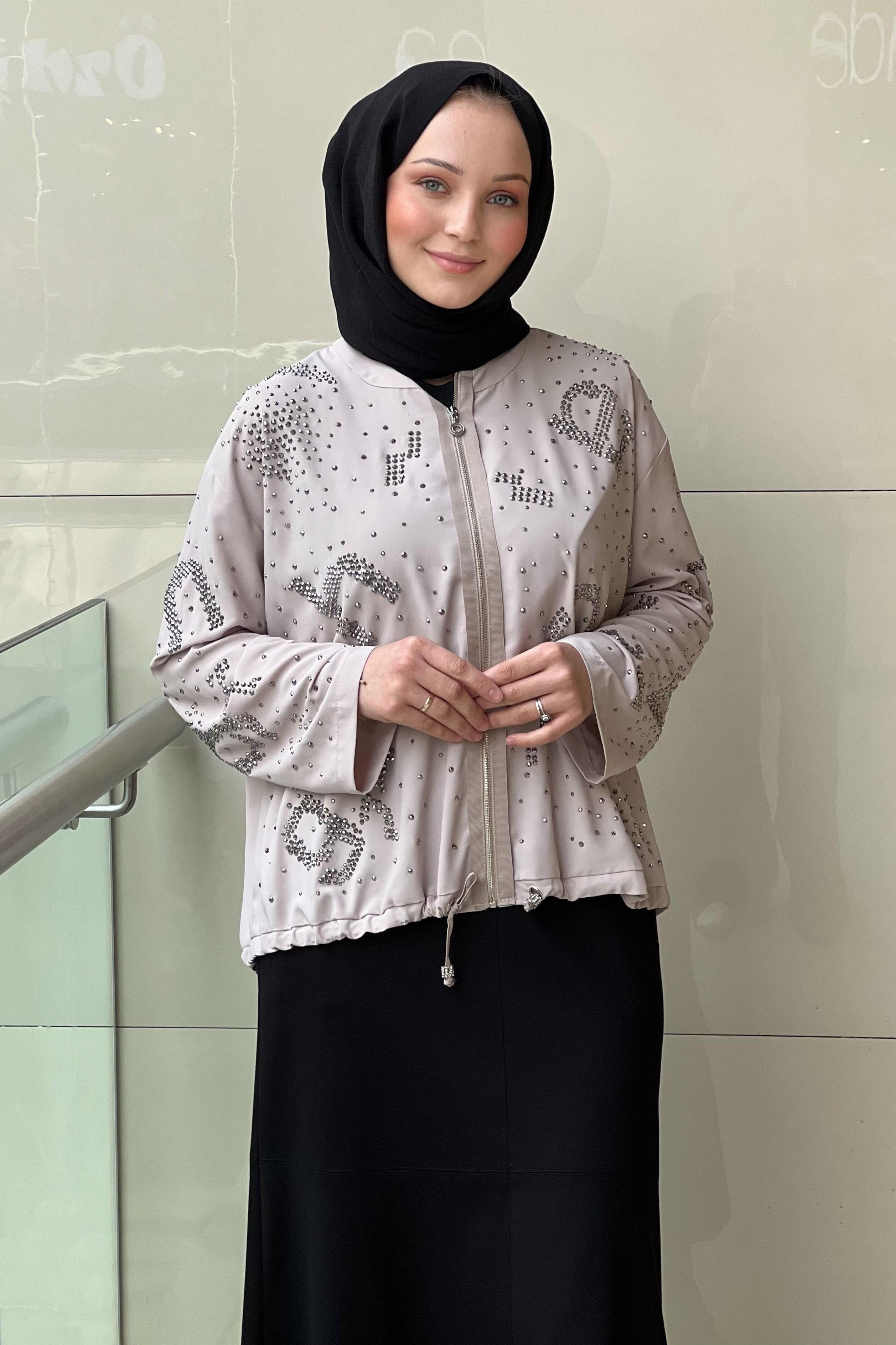 Ceket Fermuarlı Logo Taş Baskılı Bel İğli Büzgülü