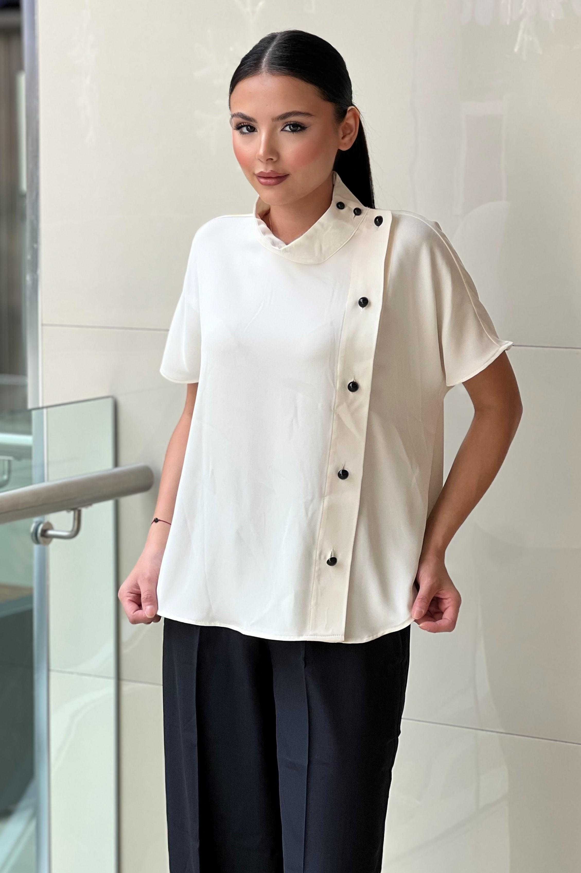 Dik Yaka Kısa Kol Asimetrik Çapraz Düğmeli