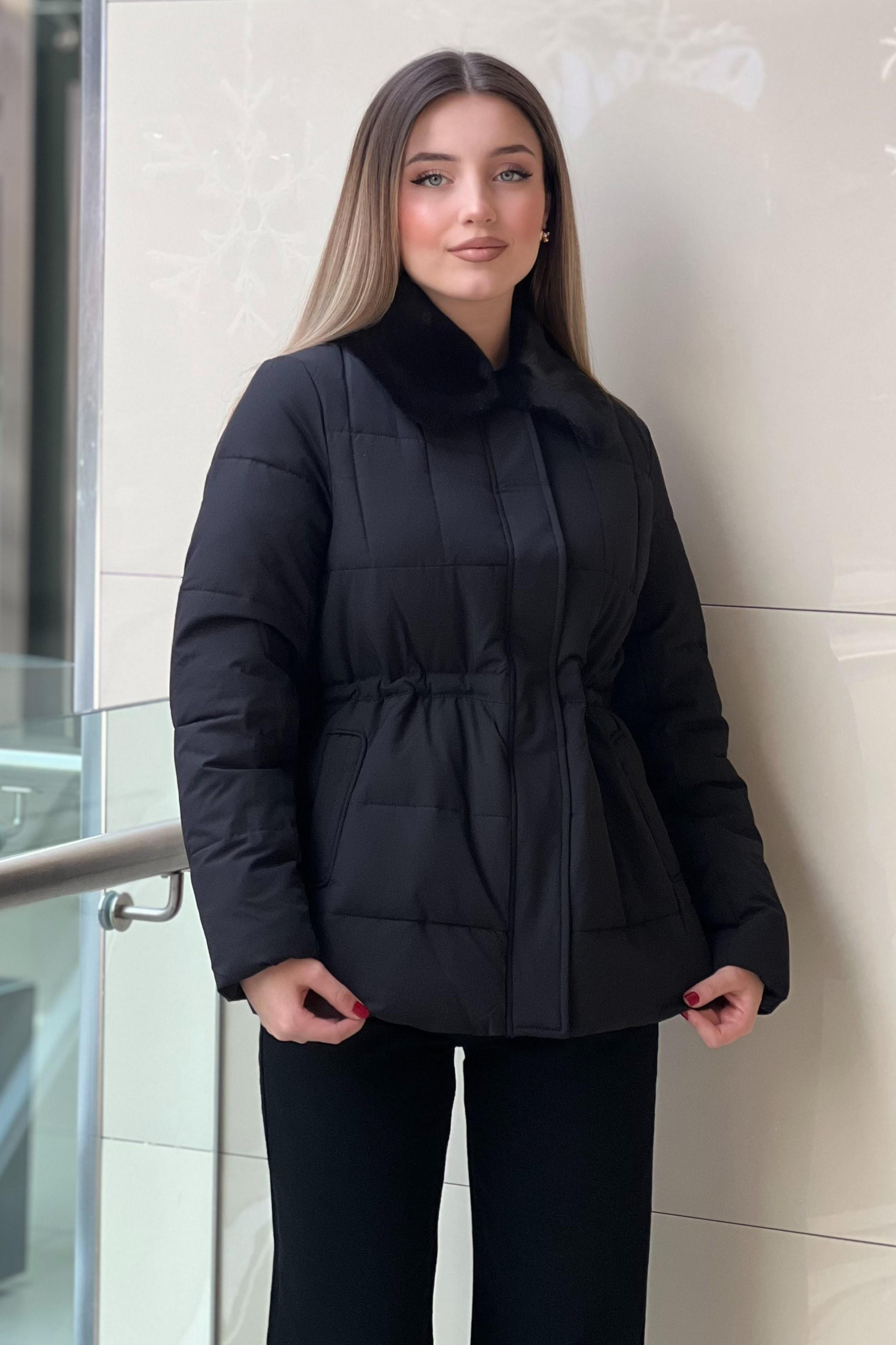 Tercihinize göre ayarlayabileceğiniz bel hattı ve suni kürk yakası, bu konforlu parçaya stil sahibi bir dokunuş katıyor.