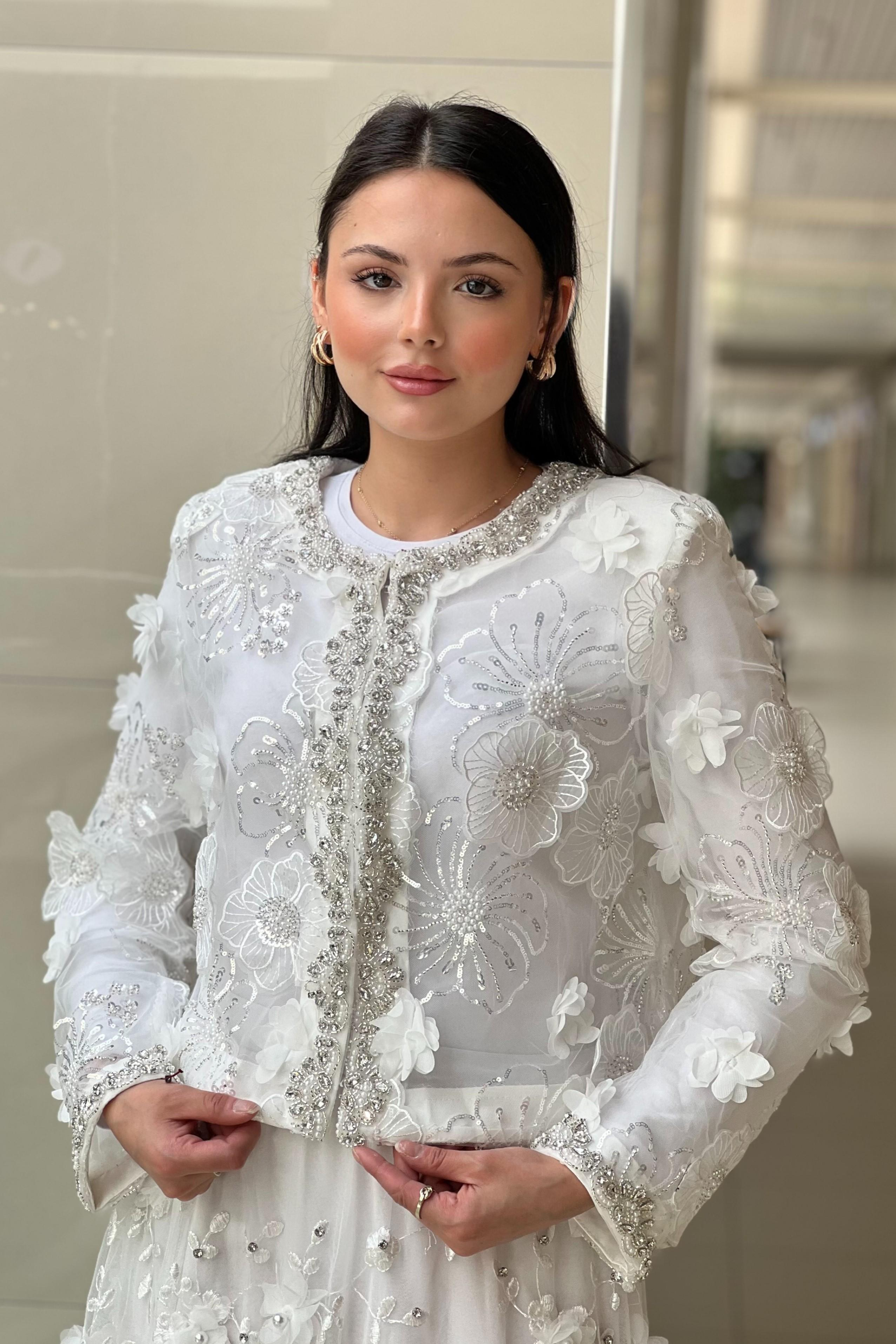 Mahal Önü Taşlı Çiçekli Organze Bomber Ceket (MHLCKT1228)