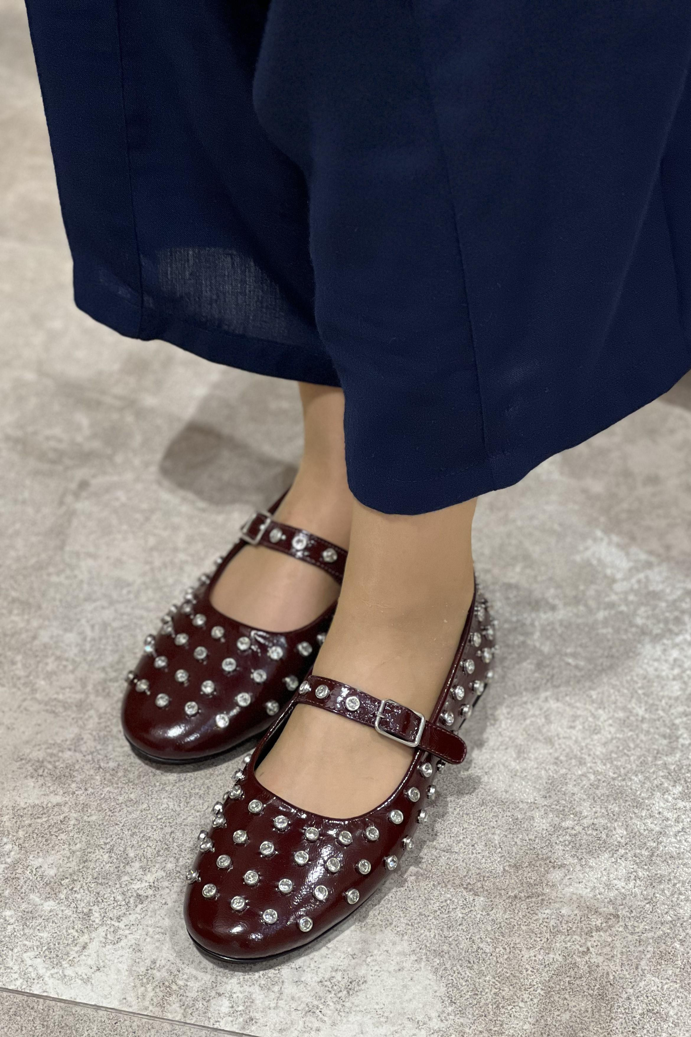 Majensia Kemerli Full Taşlı Hakiki Deri Babet