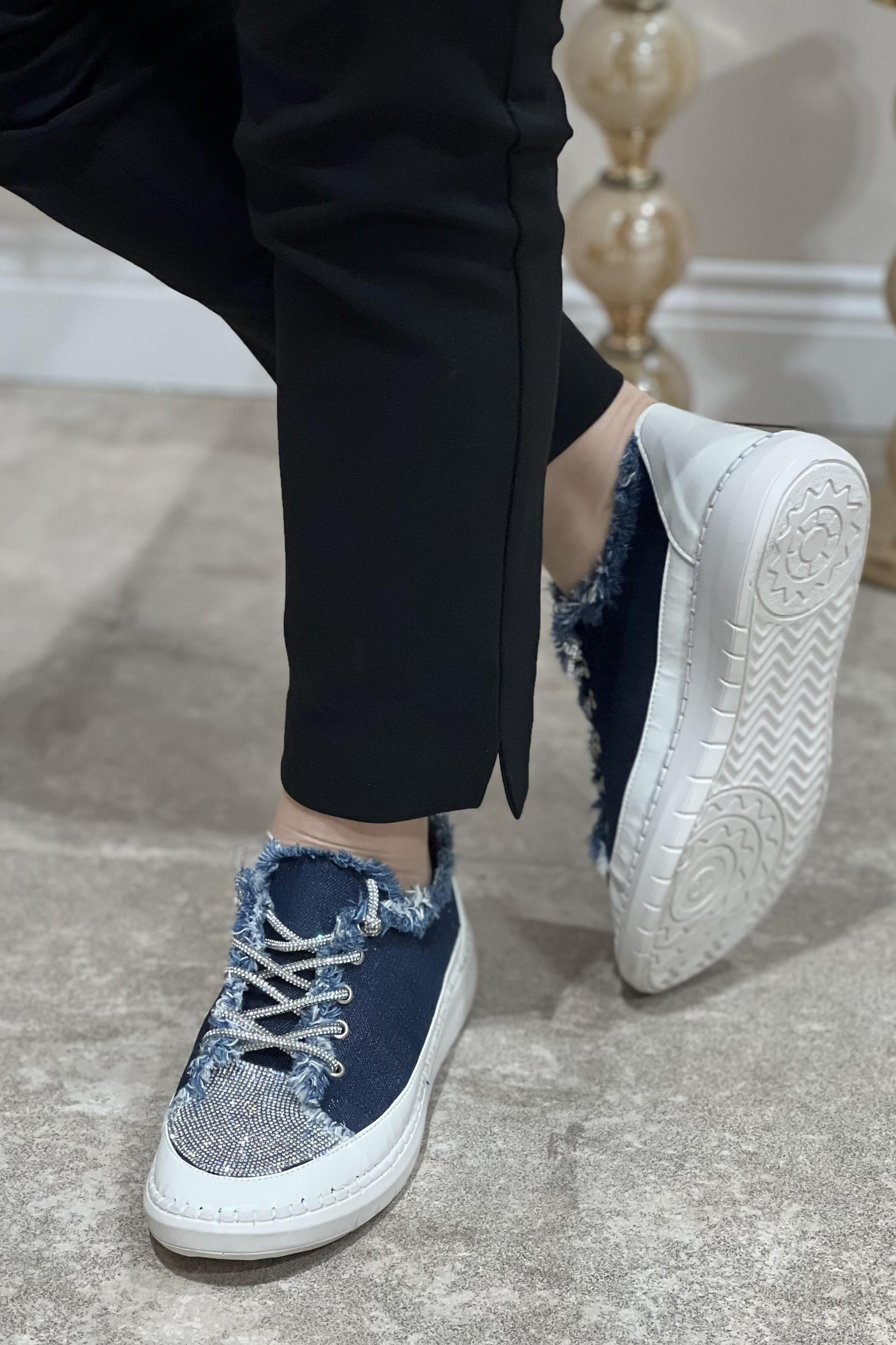 Majensia Önü Taşlı Ve Taş Bağlı Kot Sneaker Ayakkabı