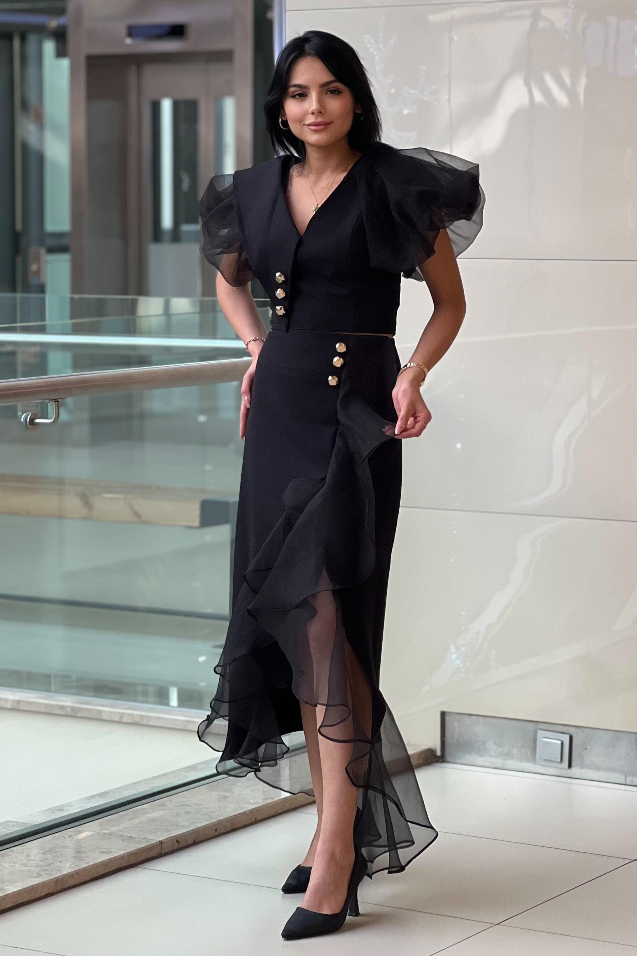Etek Arkadan Fermuarlı Organze Fırfır Detaylıdır