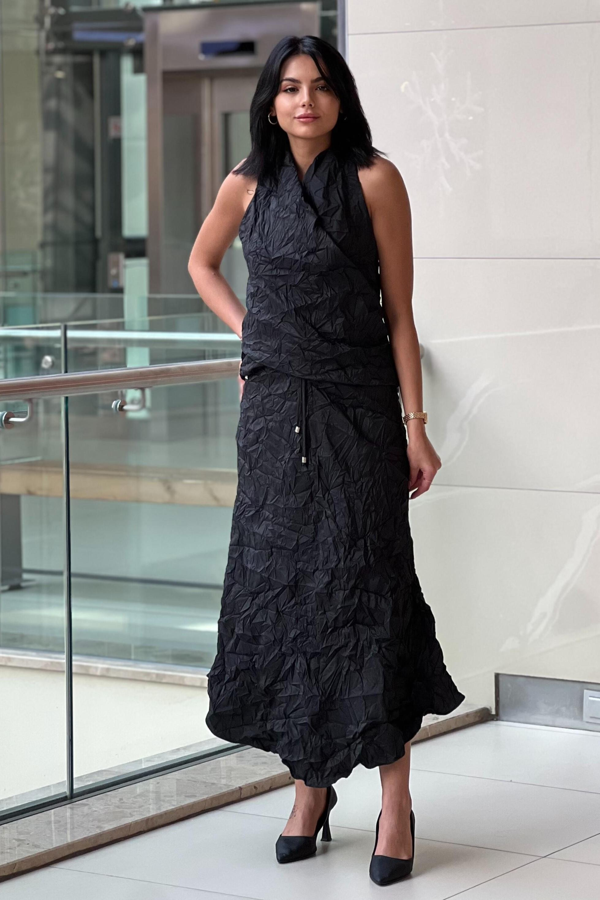 Etek Arkadan Fermuarlı Bel Bağlı Çan Form dur
