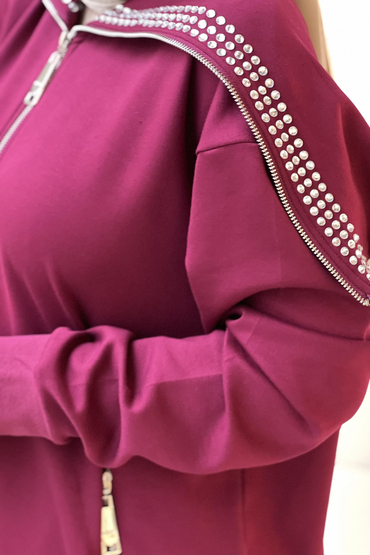 Ceket Fermuarlı Kapşonlu Taş İşlemeli Düşük Kol Ve Ribanalıdır