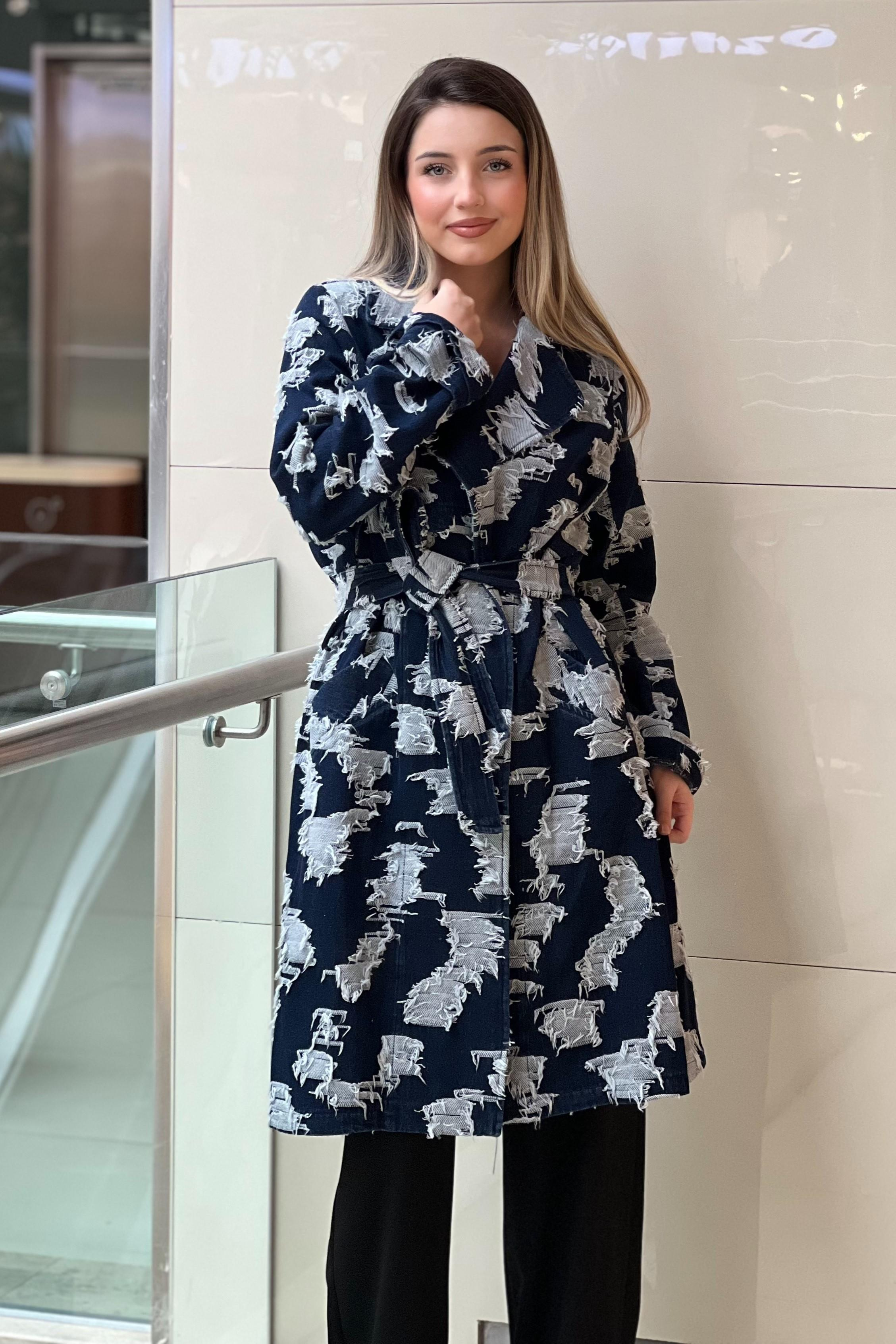 Kruvaze Yaka Takma Kol Cepli Ve Kuşaklı
