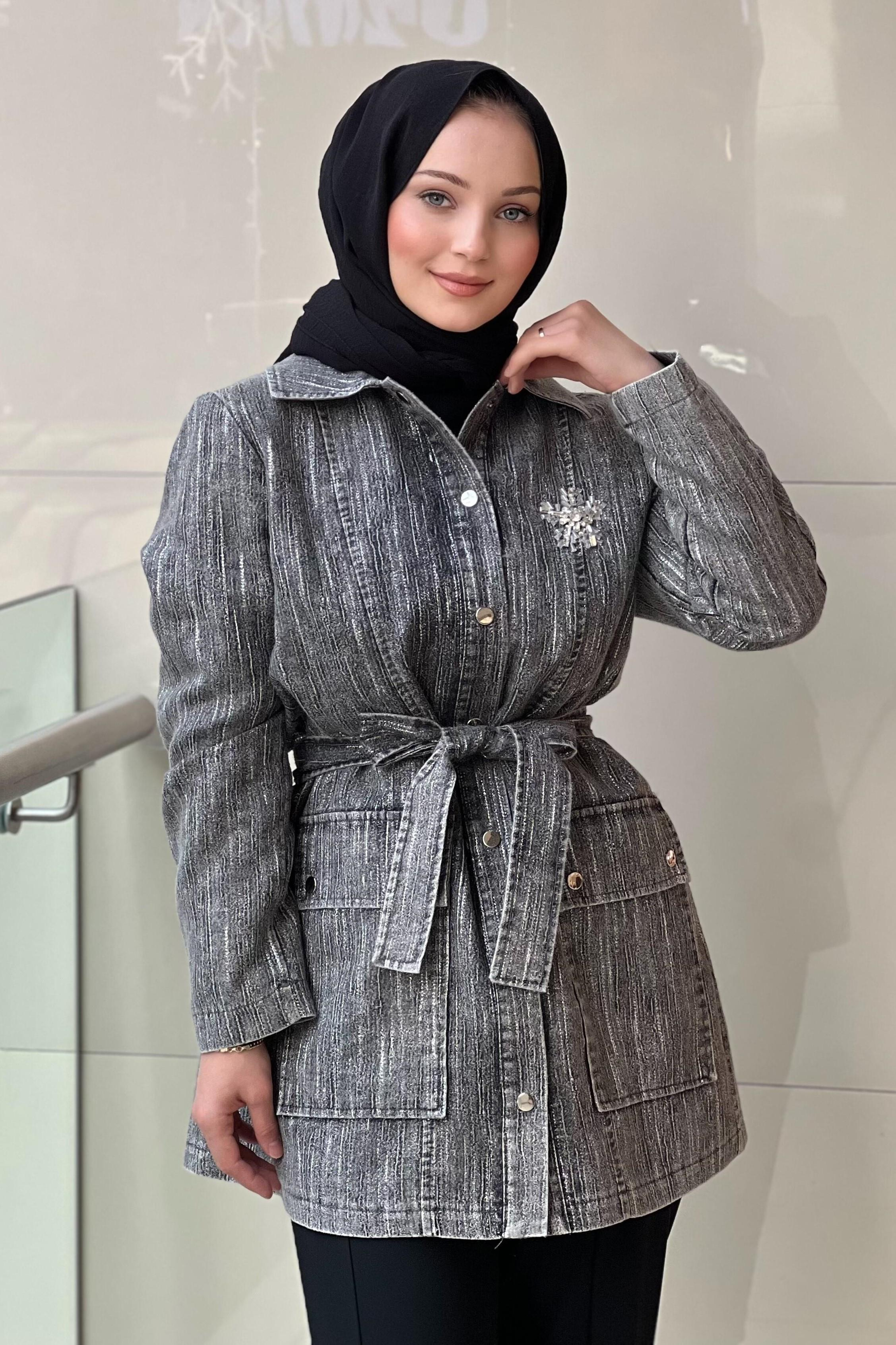 Gömlek Yaka Takma Kol Önden Çıtçıtlı Kuşaklı Rahat Kalıp