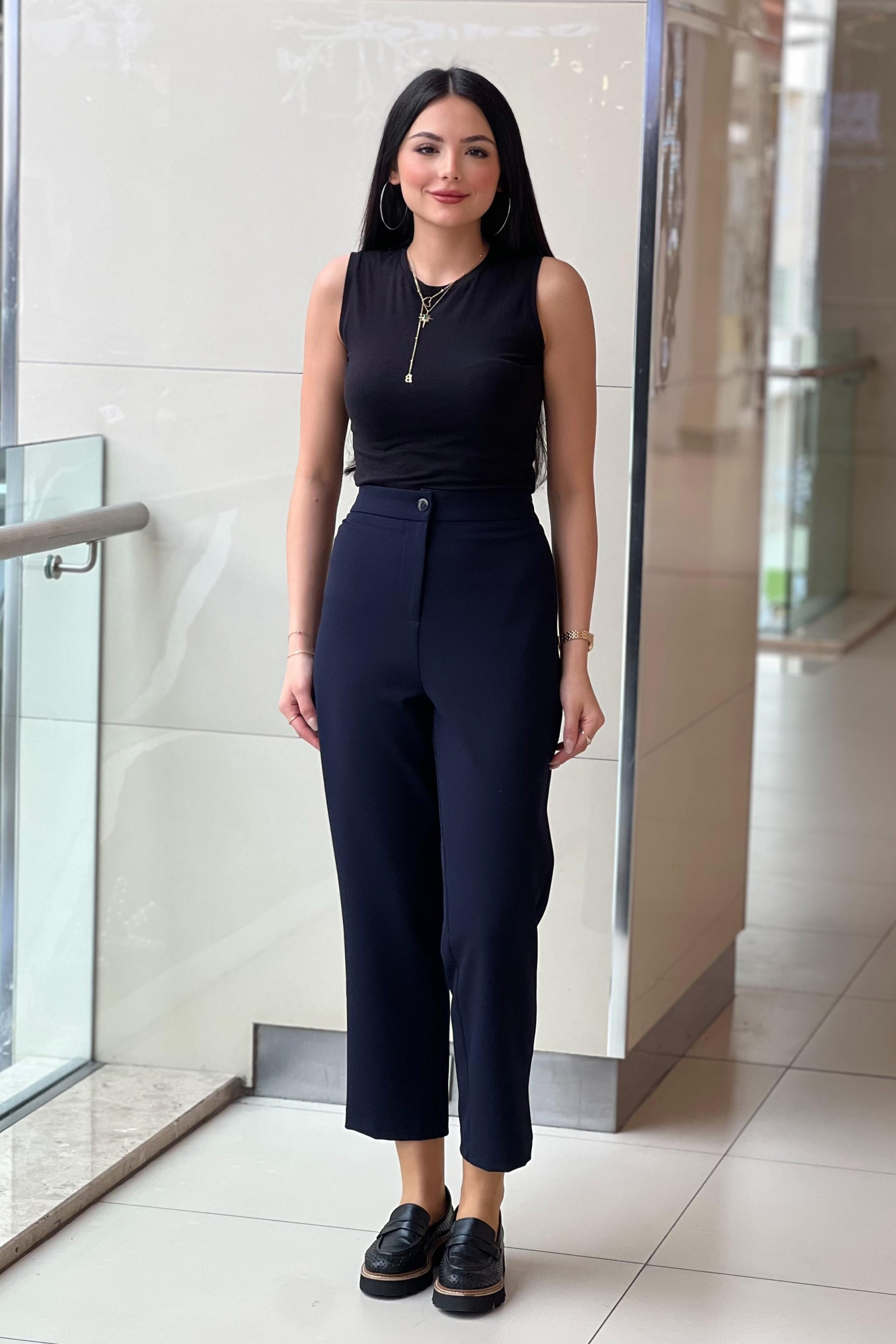 Önden Düğme Ve Fermuarlı Arkadan Lastikli Cepsiz Standart Kesimdir
