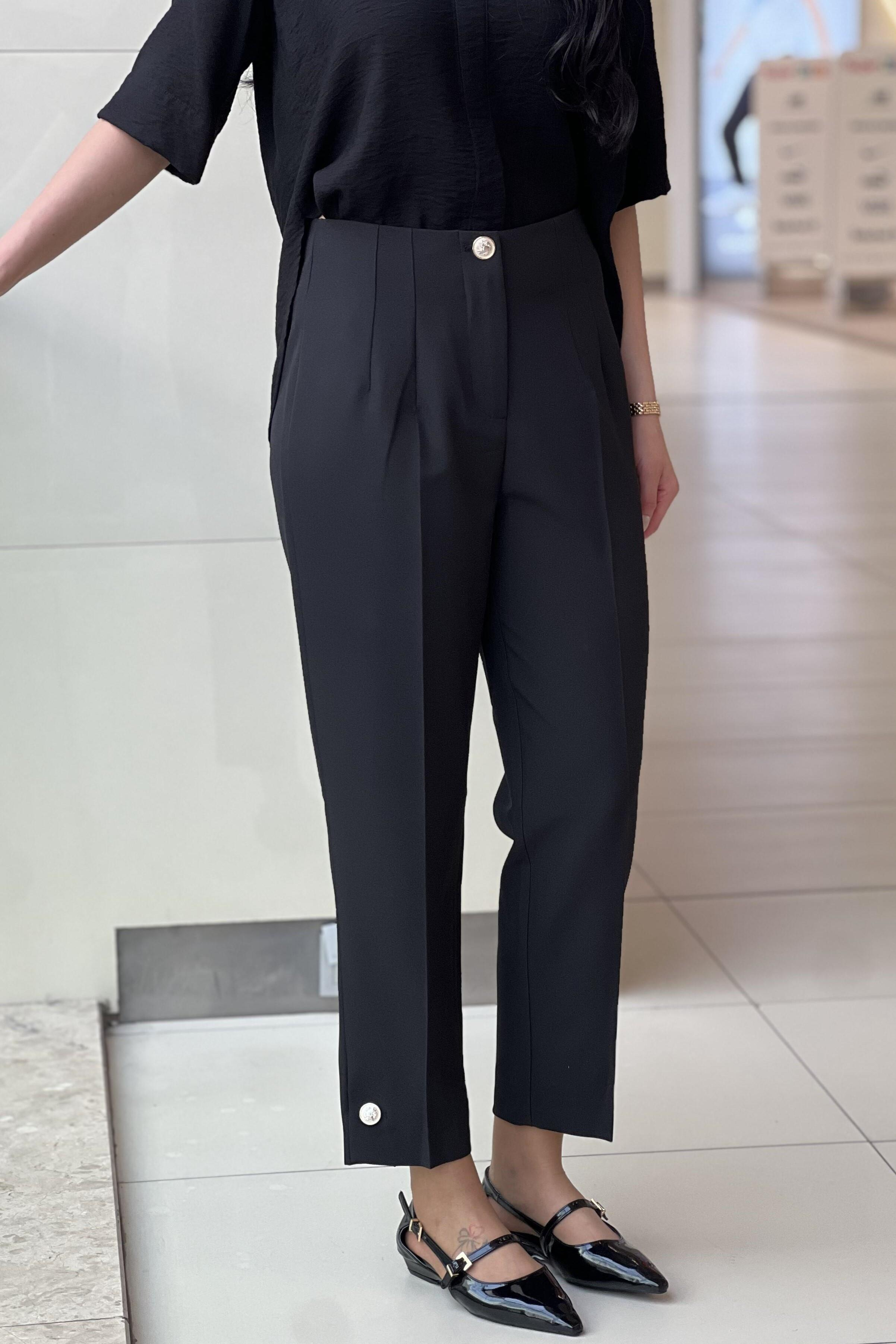 Önden Düğme Ve Fermuarlıdır Cepsiz Çift Pileli Havuç Kesimdir