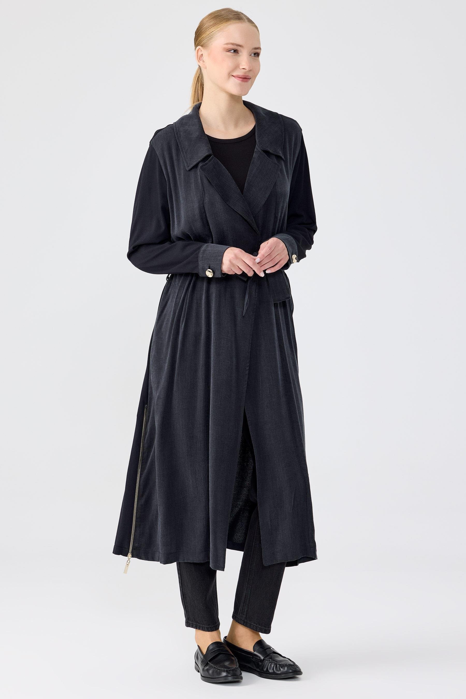 Kruvaze Yaka Düşük Kol Önü Açık Beli Kemerlidir