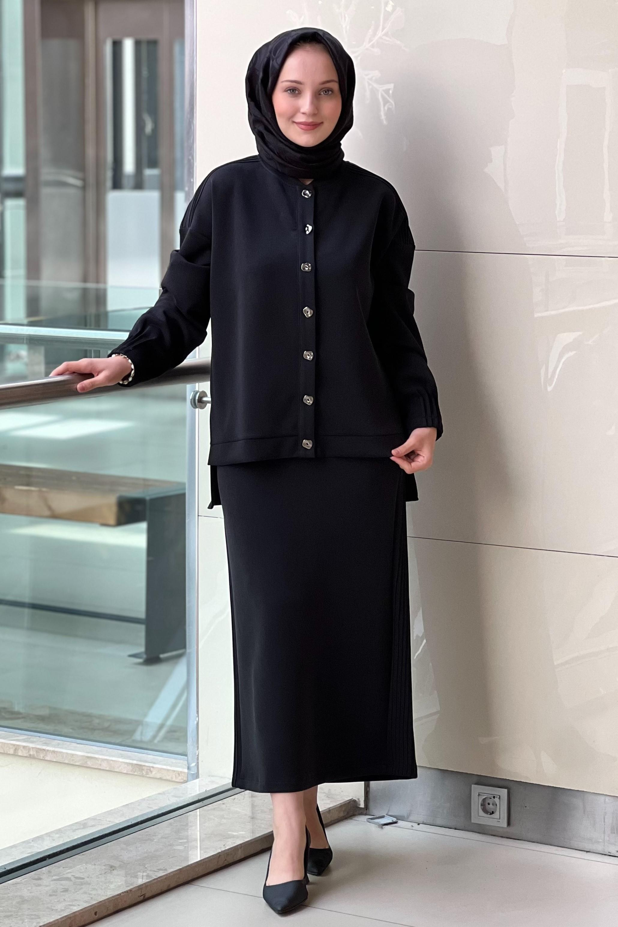 Tunik Sıfır Yaka Düşük Kol Taş Düğmeli Önü Kısa Arkası Uzun