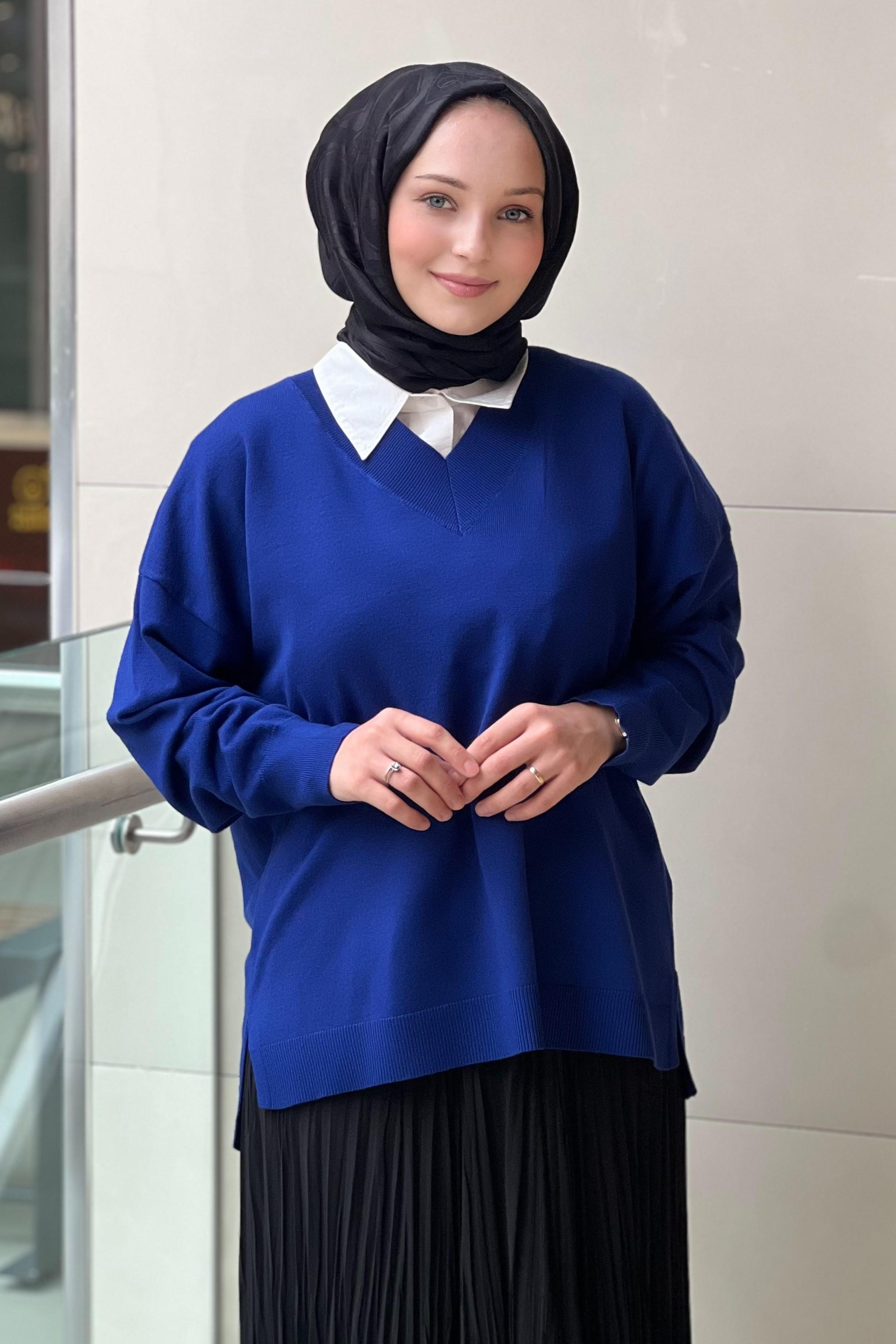 V Yaka Düşük Kol Önü Kısa Arkası Uzun Rahat Kalıptır