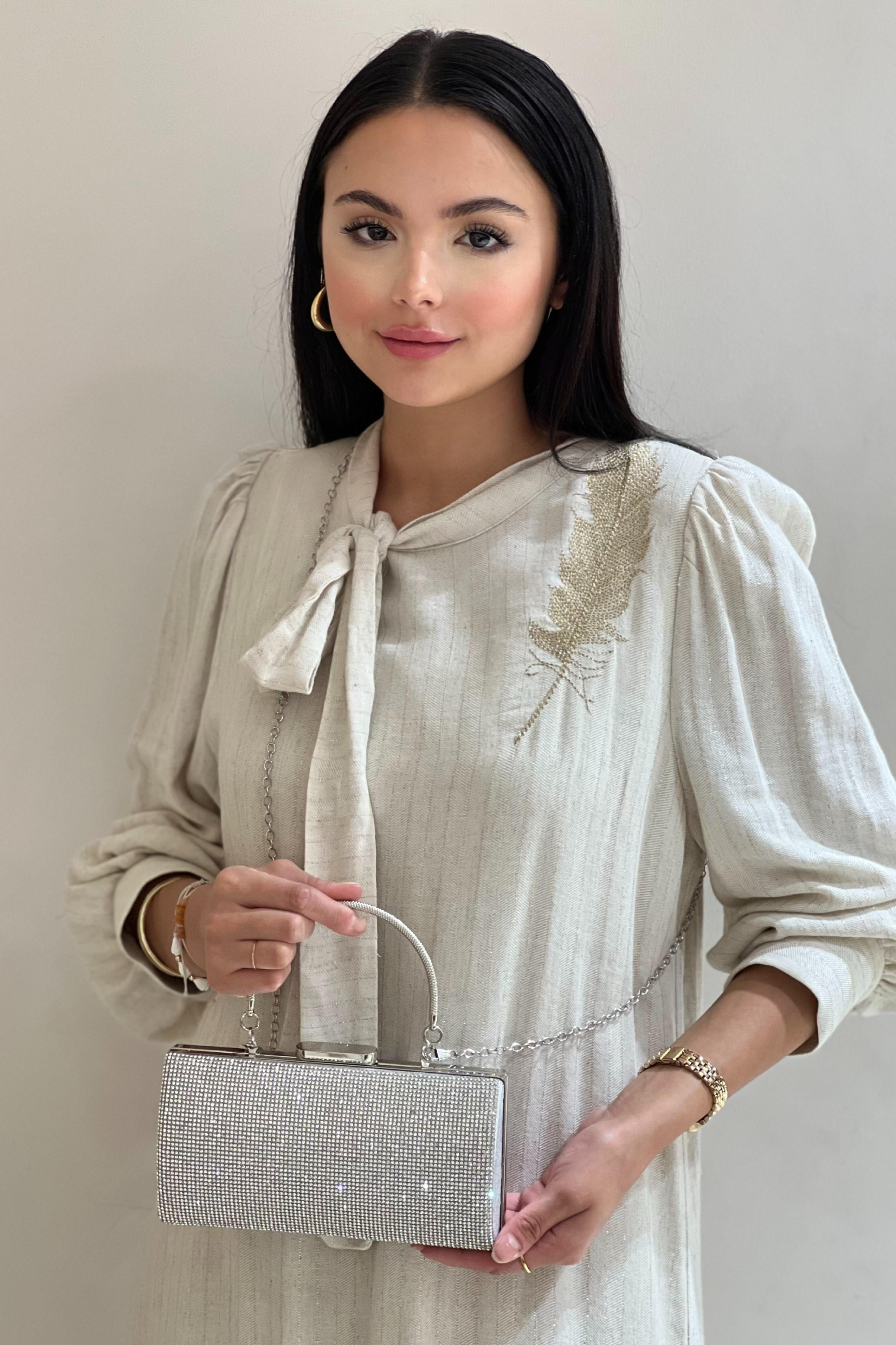 Önü Full Taşlı Arkası Parlak Abiye Kumaştan Üretilmiştir