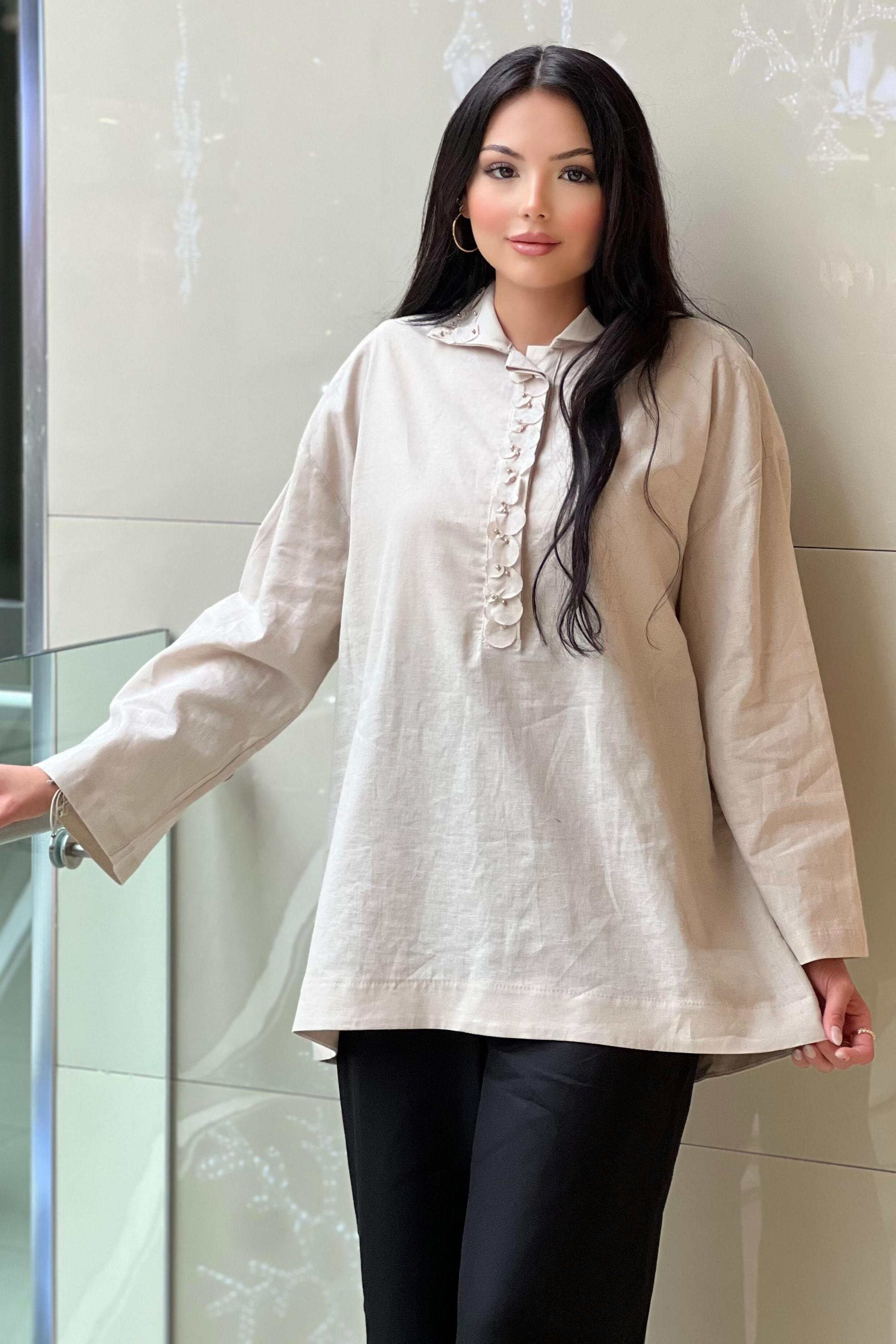 Gömlek Yaka Düşük Kol Rahat Kalıptır