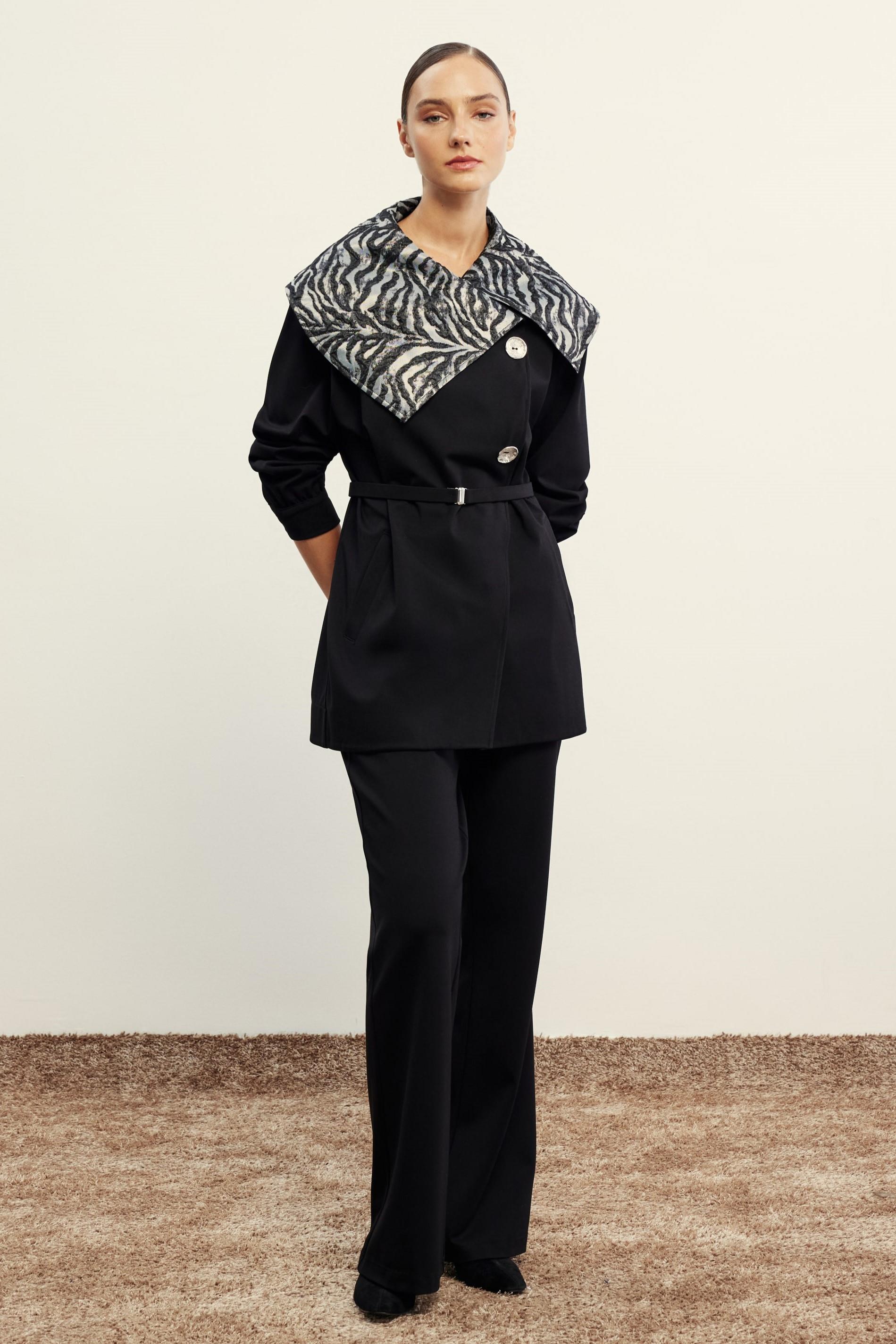 Ceket Geniş Yaka Düşük Kol Önü Asimetrik Ve Cepli