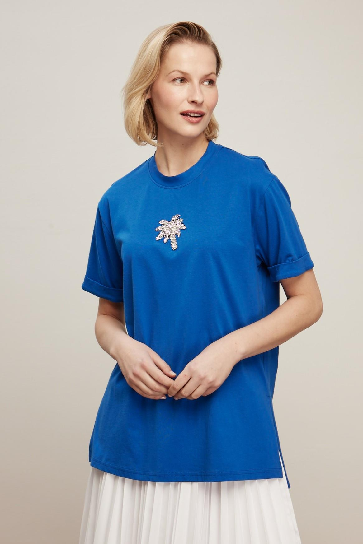 Kısa Kollu Göğsü Palmiye Taş İşli