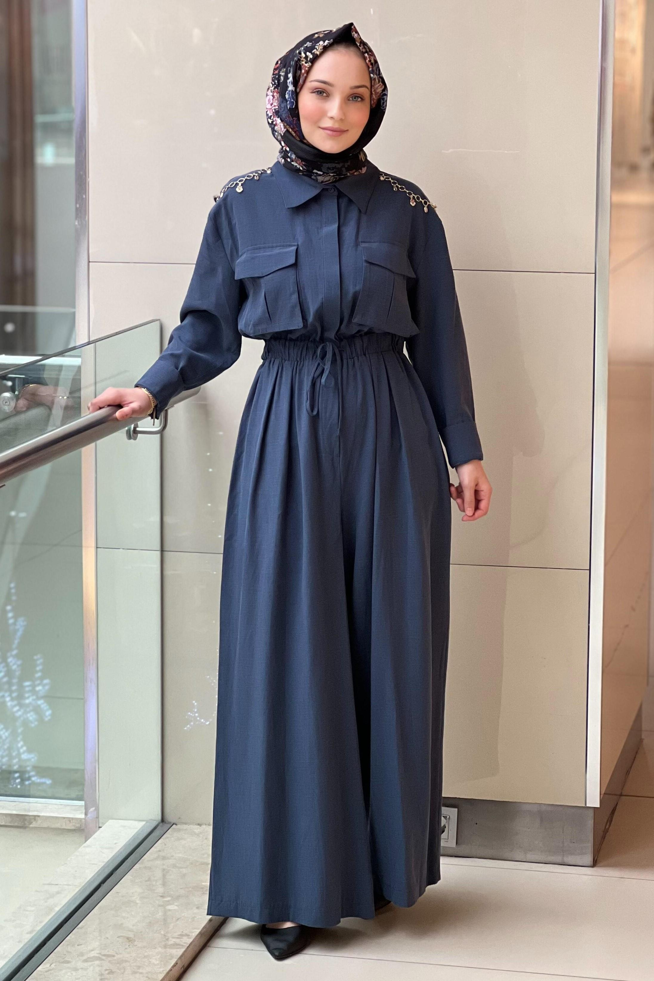 Gömlek Yaka Çift Cepli Bel Büzgülü